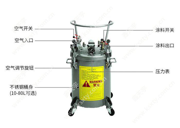 不銹鋼經濟無攪拌送漆桶,送漆桶是高壓噴涂工藝中必須的裝置,該設備具有耐高壓的特性。不銹鋼適用于水性、脫模劑送、膠水輸送、涂料輸送和其他常規液體輸送等。