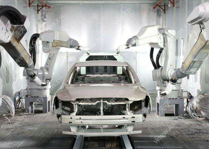 噴涂機器人又叫噴漆機器人(spray painting robot), 是可進行自動噴漆或噴涂其他涂料的工業機器人。噴漆機器人主要由機器人本體、計算機和相應的控制系統組成,液壓驅動的噴漆機器人還包括液壓油源,如油泵、油箱和電機等。多采用5或6自由度關節式結構,手臂有較大的運動空間,并可做復雜的軌跡運動,其腕部一般有2~3個自由度,可靈活運動。較先進的噴漆機器人腕部采用柔性手腕,既可向各個方向彎曲,又可轉動,其動作類似人的手腕,能方便地通過較小的孔伸入工件內部,噴涂其內表面。噴漆機器人一般采用液壓驅動,具有動作速度快、防爆性能好等特點,可通過手把手示教或點位示數來實現示教。噴漆機器人廣泛用于汽車、儀表、電器、搪瓷等工藝生產部門。
