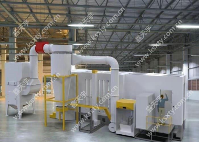 雙工位脈沖噴粉房應用于靜電粉末噴涂工藝中保護噴涂設備,與粉末回收系統搭配。