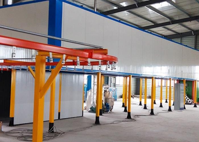 為了使塑料粉末吸附在金屬表面上,必須先對表面進行以下處理:脫脂,水洗,酸洗,水洗,表面調節,磷化,水洗和干燥。 在此過程中,同時進行鍋爐蒸汽加熱,節省了磷化時間; 向干燥箱中添加了一個熱吹風機,以加快干燥過程。 進行靜電噴涂后,垂飾沿著裝配線進入電烤箱。 隨著燃油價格的逐步上漲,電加熱系統開始顯示其優勢。 同一加熱系統的加熱成本遠低于燃料的加熱成本,并且燃料易揮發且不安全。 因此,電加熱系統也成為首選的加熱方法,加熱到預定溫度(根據產品的厚度通常在200°C左右),并保持15至30分鐘,使其熔化,流平,固化,打開 爐子并取出冷卻以獲得成品